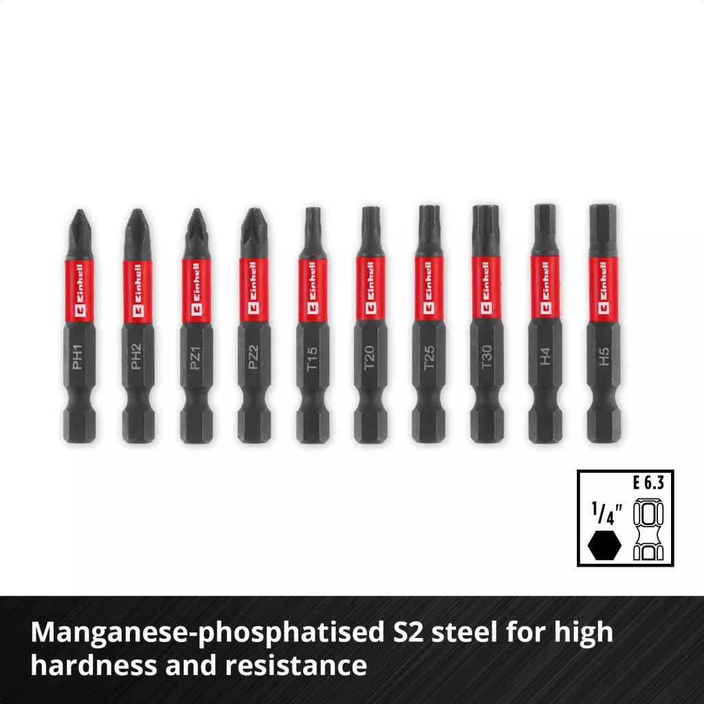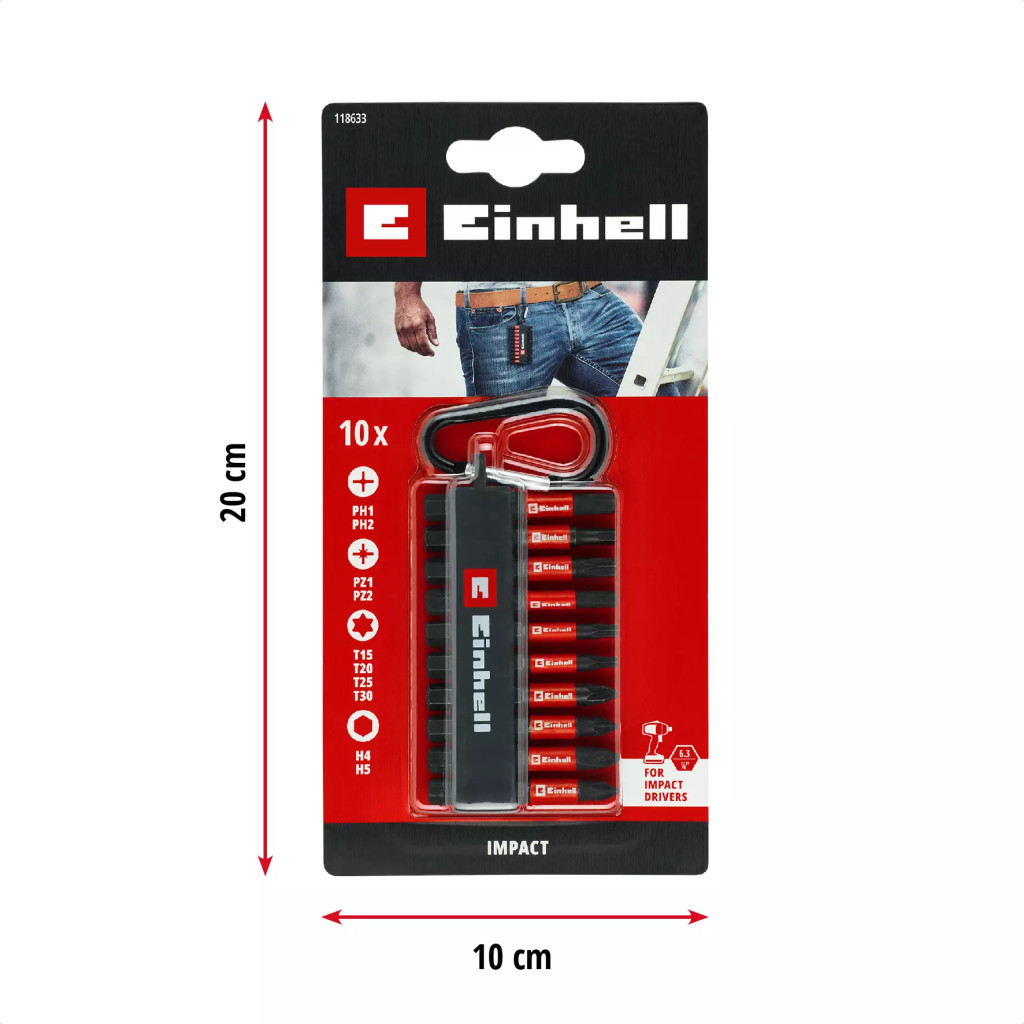 Einhell 10 részes ütvefúró bitkészlet karabinerrel, zsebkészlet, 50 mm